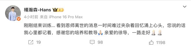 前山东男篮球员文雁行发文称:“徐导一路走好!中秋月满,您却化作星辰。从此每逢佳节抬头望,那最亮的光,便是恩师您的目光。一辈子恩师。”